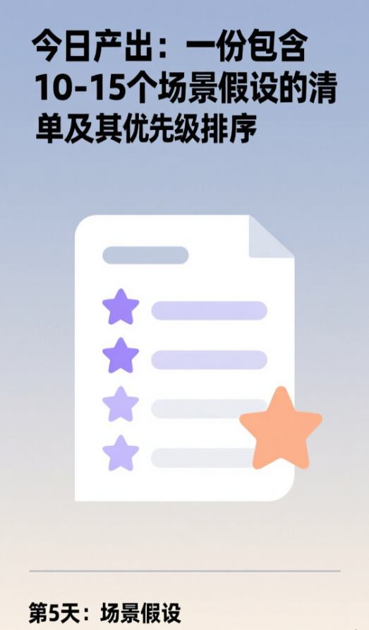 今日产出:一份包含10-15个场景假设的清单及其优先级排序。