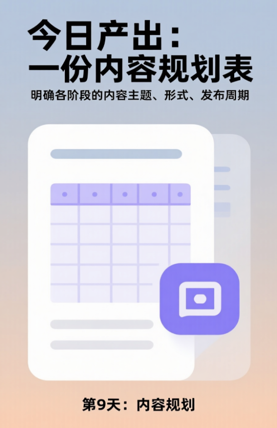 今日产出:一份内容规划表,明确各阶段的内容主题、形式、发布周期。